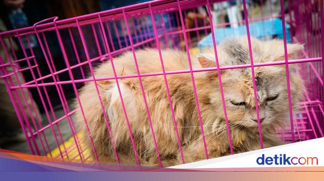 Tempat yg salah utk BUANG kucing. Tidak ada larangan dalam Islam membuang atau mengungsikan kucing karena mengganggu misalnya makan ayam makan burung peliharaan kencing sembarangan dan lainnya. Kucing berbulu lebat warna cokelat meringkuk lemas di dalam kandang sempit berbau pesing di salah satu kios di Pasar Hewan Barito Jakarta Selatan Rabu 16 Maret 2022.